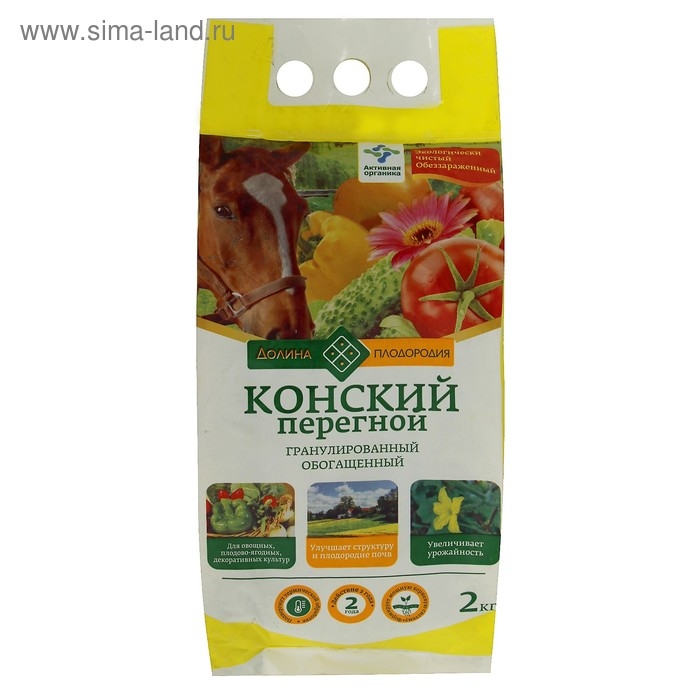 Удобрение органическое Конский перегной Долина плодородия, гранулинованное, 2 кг