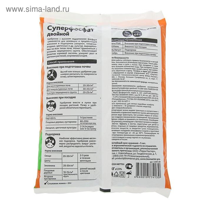 Удобрение минеральное БиоМастер Суперфосфат двойной, гум., 1 кг
