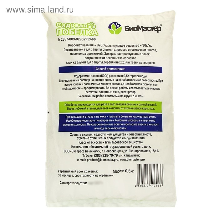 Побелка садовая БиоМастер, 0,5 кг придёт на помощь в сложной ситуации. Средство безопасно для насаждений, но губительно для возбудителей болезней. Использование препарата на садовом участке будет лучшим проявлением заботы об огороде и существенно повысит ваши шансы сохранить плоды.