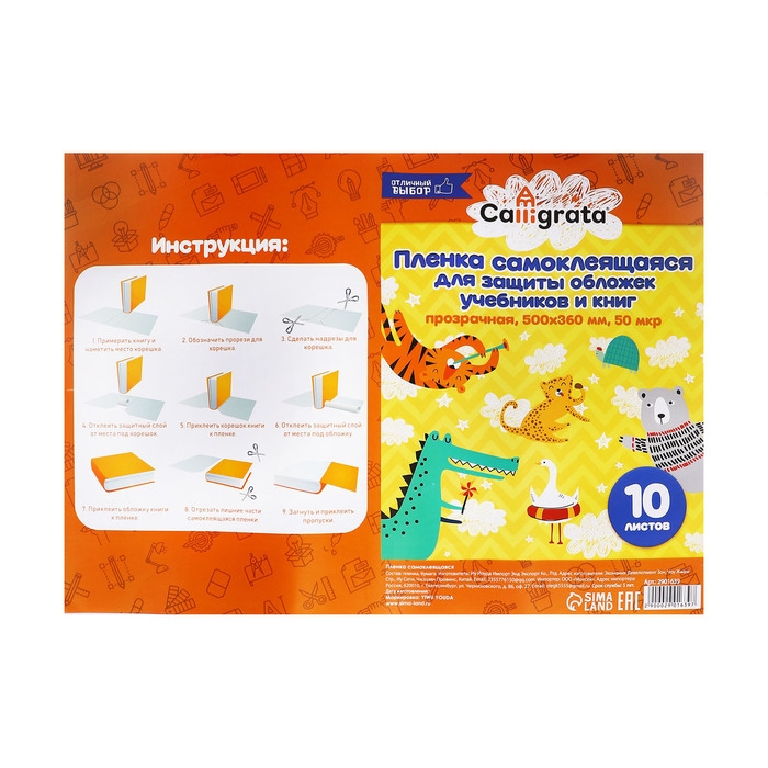 Пленка самоклеящаяся, 50 х 36 см, прозрачная, 10 листов, 50 мкм, МИКС