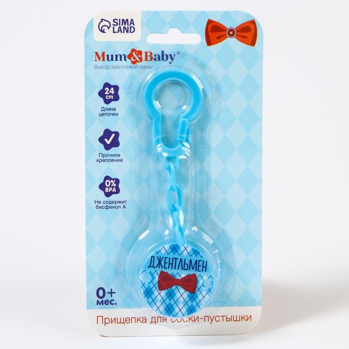 Держатель для соски - пустышки «Джентльмен», на цепочке, цвет голубой