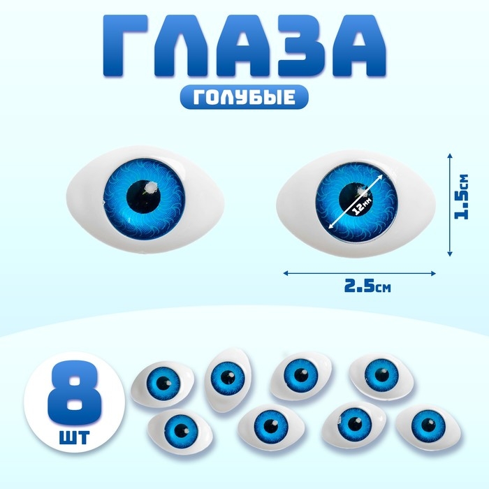 Глаза, набор 8 шт., размер радужки — 12 мм, цвет голубой