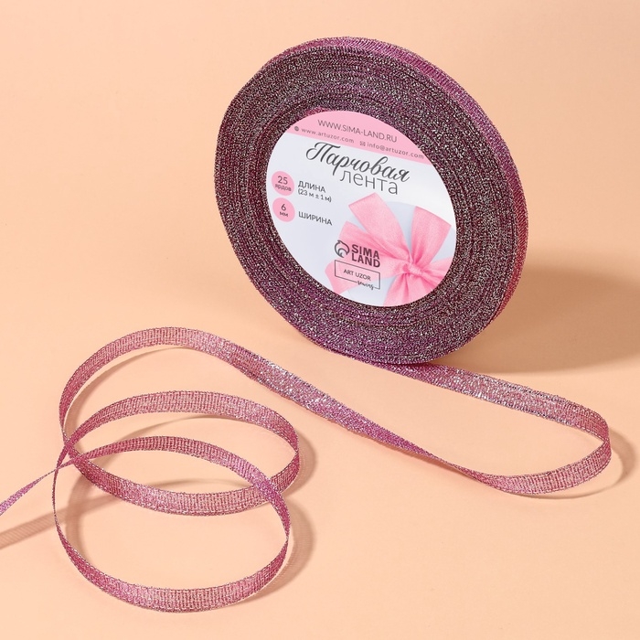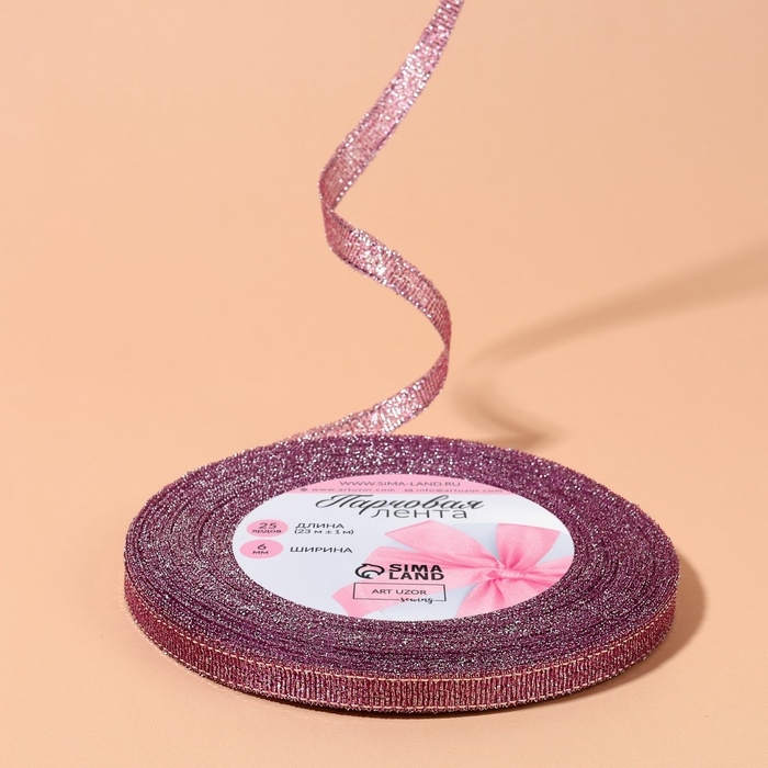 Лента парчовая, 6 мм, 23 ± 1 м, цвет сиреневый №021