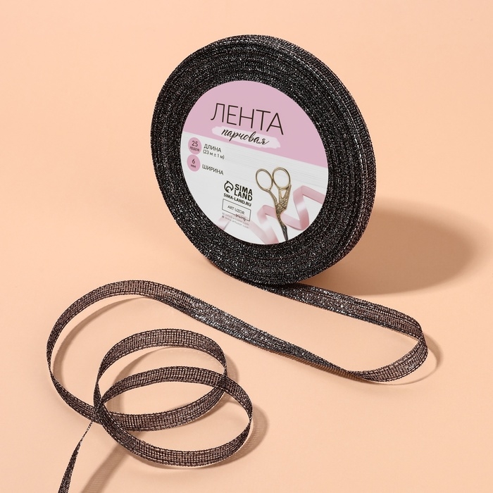 Лента парчовая, 6 мм, 23 ± 1 м, цвет чёрный №029