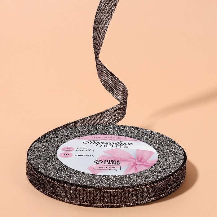 Лента парчовая, 10 мм, 23 ± 1 м, цвет чёрный №029