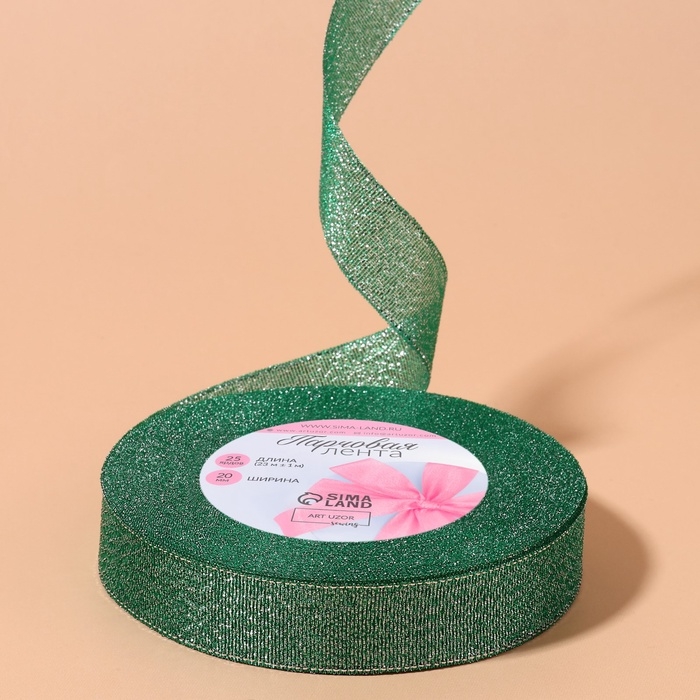 Лента парчовая, 20 мм, 23 ± 1 м, цвет зелёный №41
