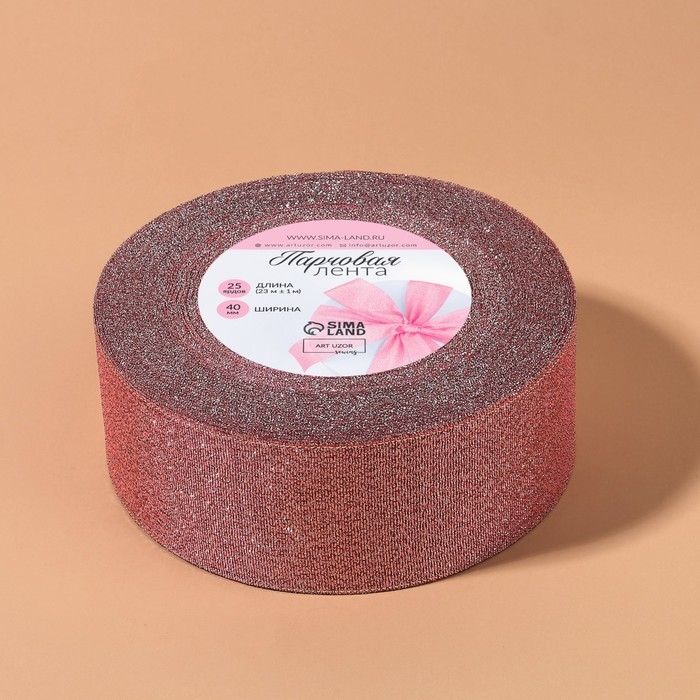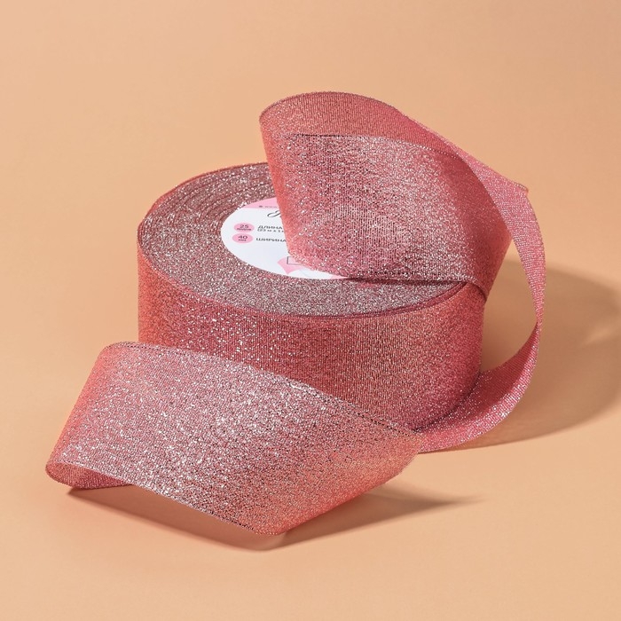 Лента парчовая, 40 мм, 23 ± 1 м, цвет розовый №013