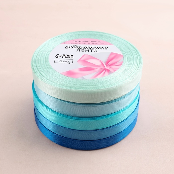 Набор атласных лент, 5 шт, размер 1 ленты: 10 мм × 23 ± 1 м, цвет синий спектр