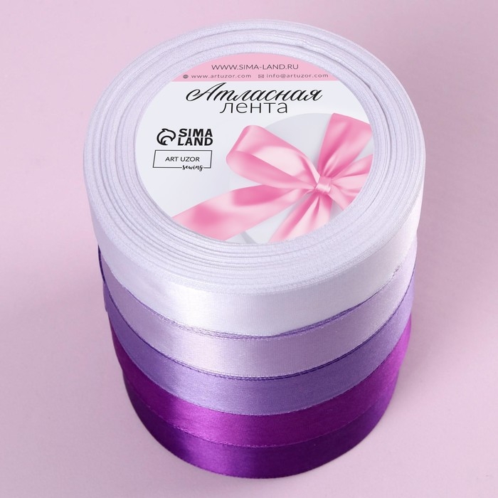 Набор атласных лент, 5 шт, размер 1 ленты: 20 мм × 23 ± 1 м, цвет фиолетовый спектр