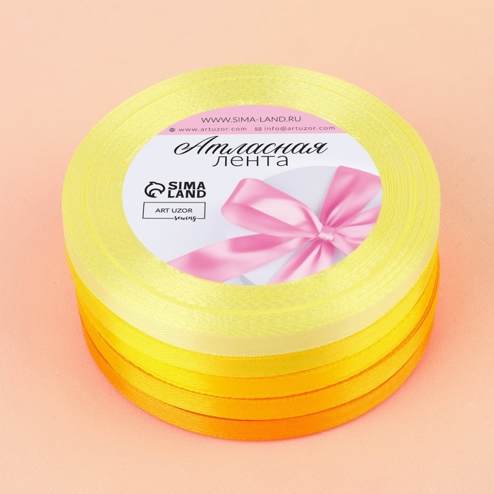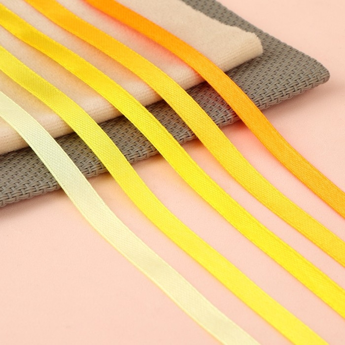Набор атласных лент, 5 шт, размер 1 ленты: 6 мм × 23 ± 1 м, цвет жёлтый спектр