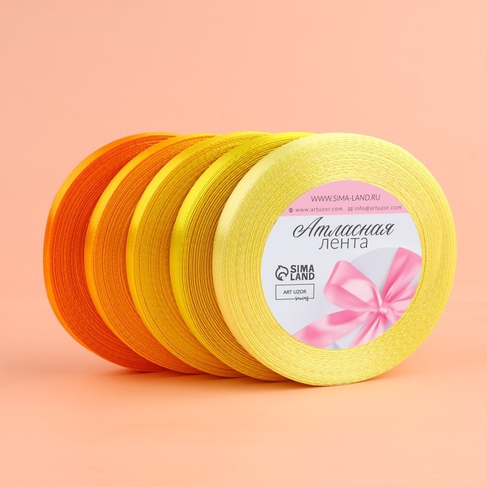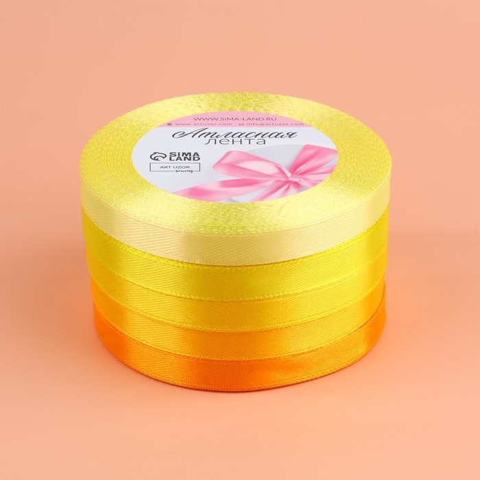 Набор атласных лент, 5 шт, размер 1 ленты: 6 мм × 23 ± 1 м, цвет жёлтый спектр