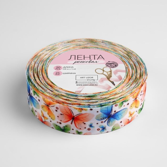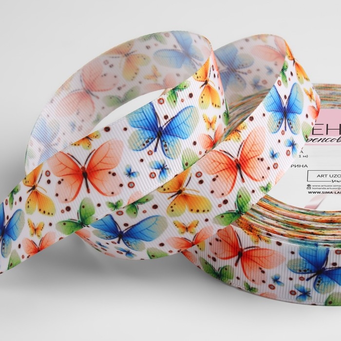 Лента репсовая «Бабочки», 25 мм, 18 ± 1 м, разноцветная