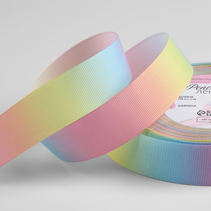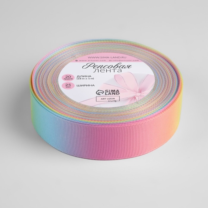 Лента репсовая «Радуга», 25 мм, 18 ± 1 м, разноцветная