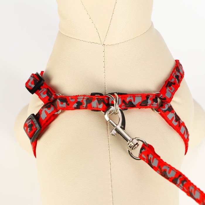 Яркий прогулочный комплект для собак прошитый . Шлейка регулируется а ремни шлейки не давят на грудь и шею а равномерно распределяют нагрузку. Шлея для собак 3 , 5 , 10 , 15, 20 кг мелких пород и кошек . Шлейка текстильная , регулируется пластиковыми креплениями. Поводок крепится к металлическому кольцу карабином. На спине амуниция фиксируется застежкой из пластика. Шлейка исключит побег животного, если правильно подобрать размер и отрегулировать ремни.