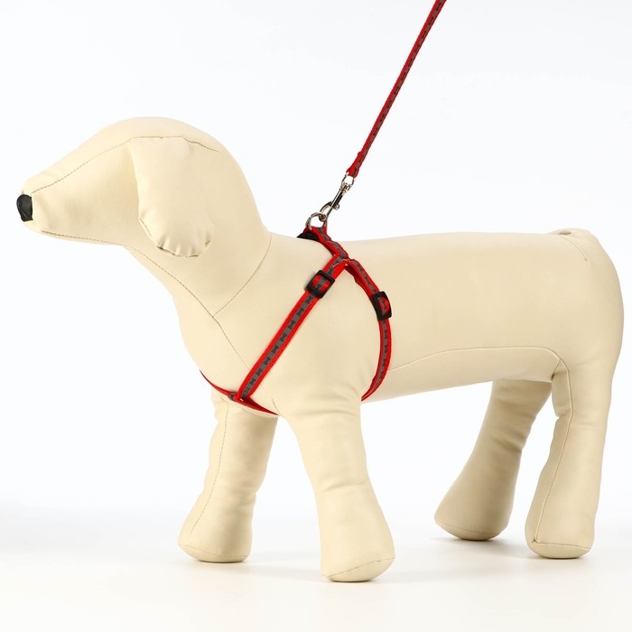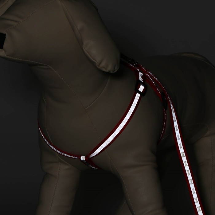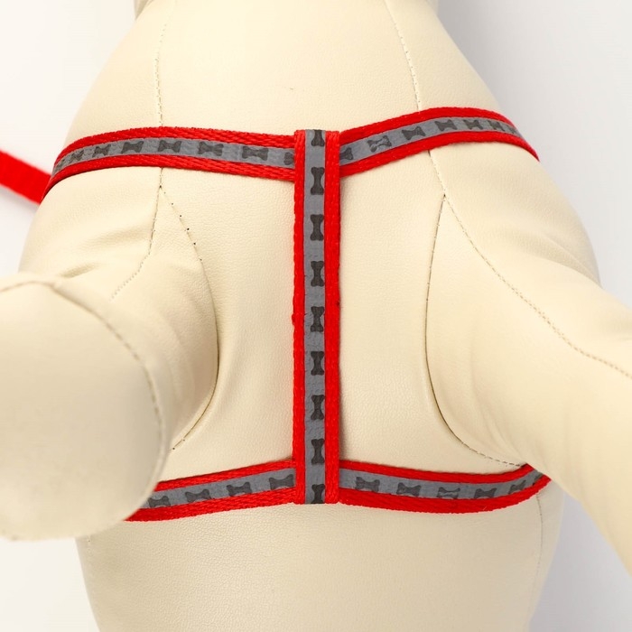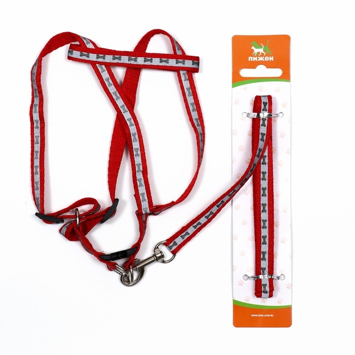 Комплект светоотражающий "Косточки", поводок 1 х 120 см (ОШ 26-42 см ,ОГ 26-42 см) красный