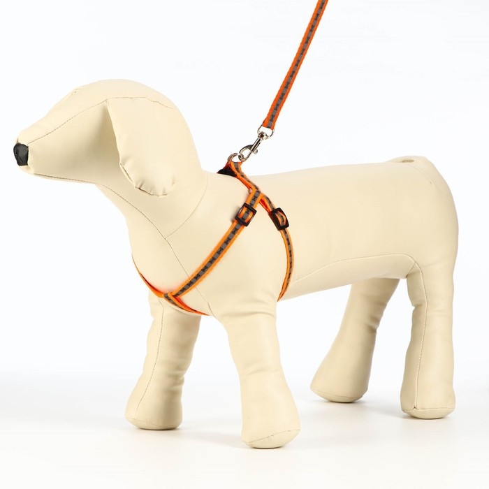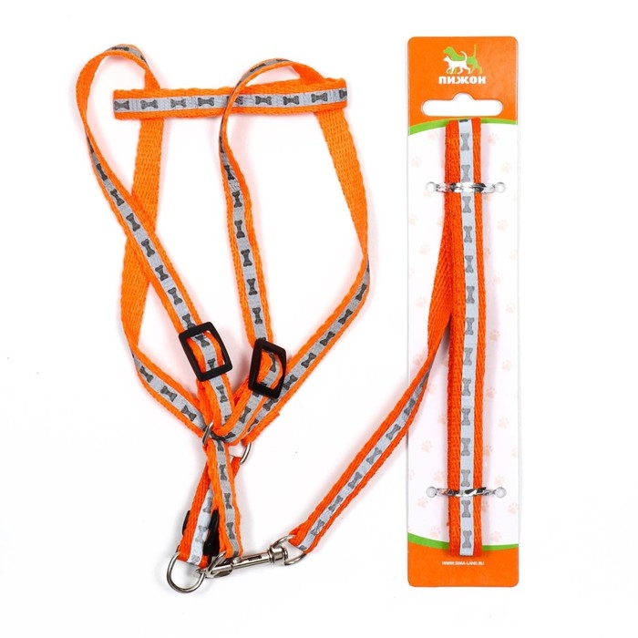 Комплект светоотражающий "Косточки", ошейник 120 х 1 см, ОШ 24-40 см, ОГ 24-40 см оранжевый