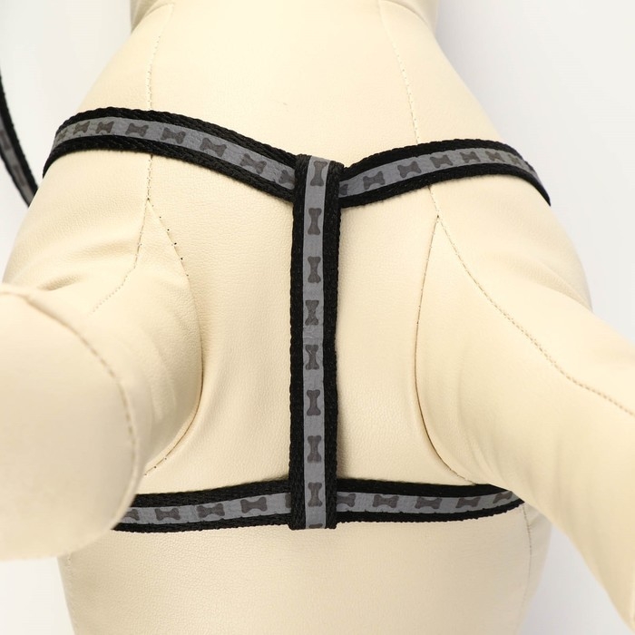 Комплект светоотражающий "Косточки", поводок 1 х 120 см (ОШ 22-34 см ,ОГ 22-34 см) чёрный