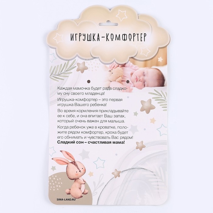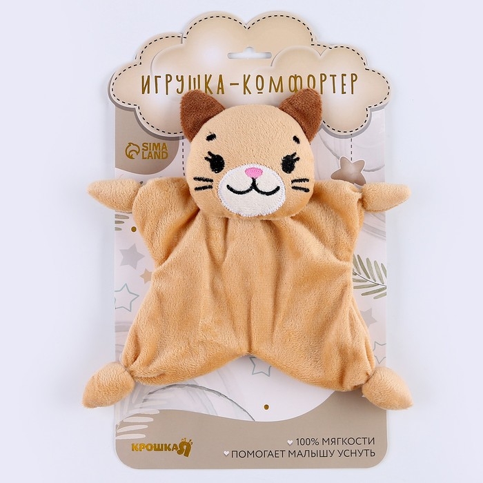 Такое изделие подойдёт ребёнку не только для крепкого сна, но и в качестве первой игрушки, так как оно не имеет твёрдых или острых деталей. Комфортер выполнен из плюшевой ткани, мягкой и приятной на ощупь.