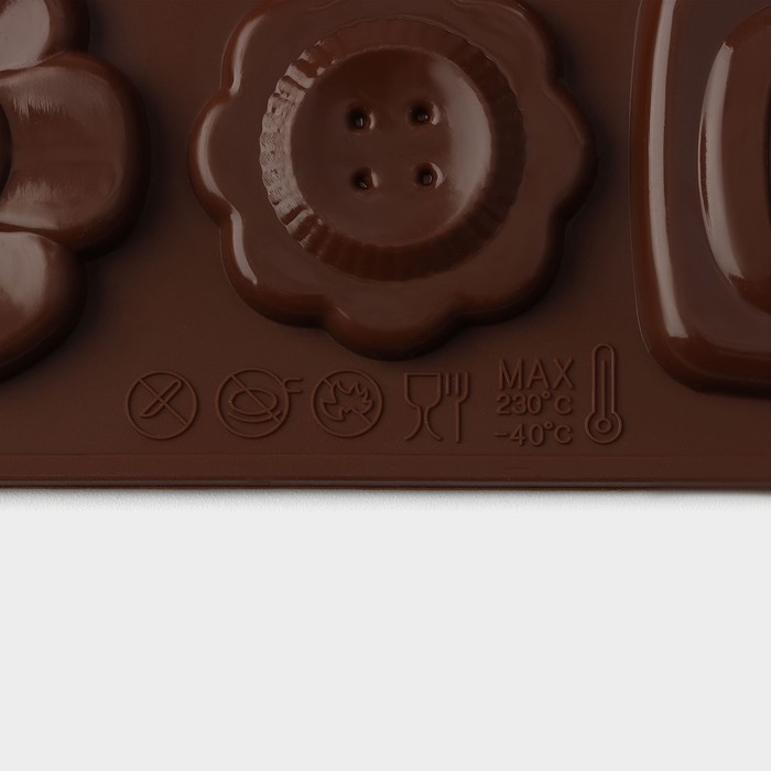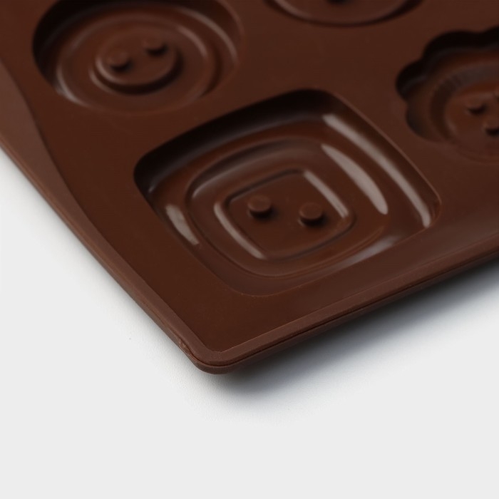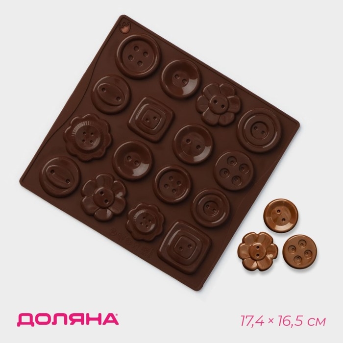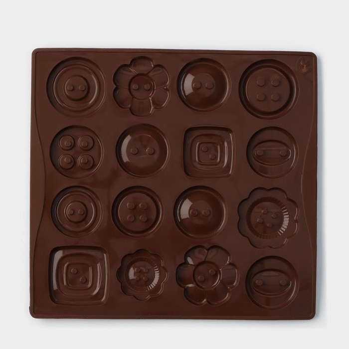 Форма для кондитерских украшений Доляна «Пуговки», силикон, 17,4×16,5×0,4 см, 16 ячеек (d=3 см), цвет МИКС