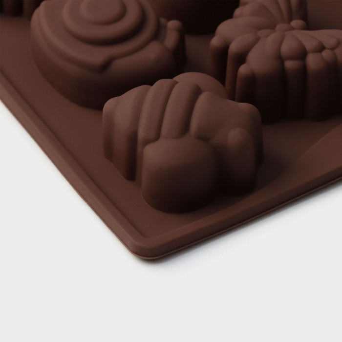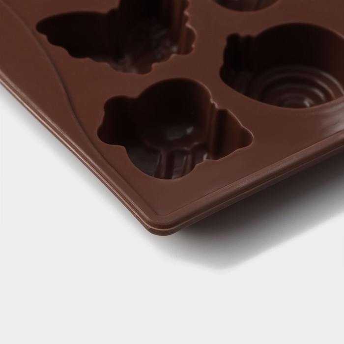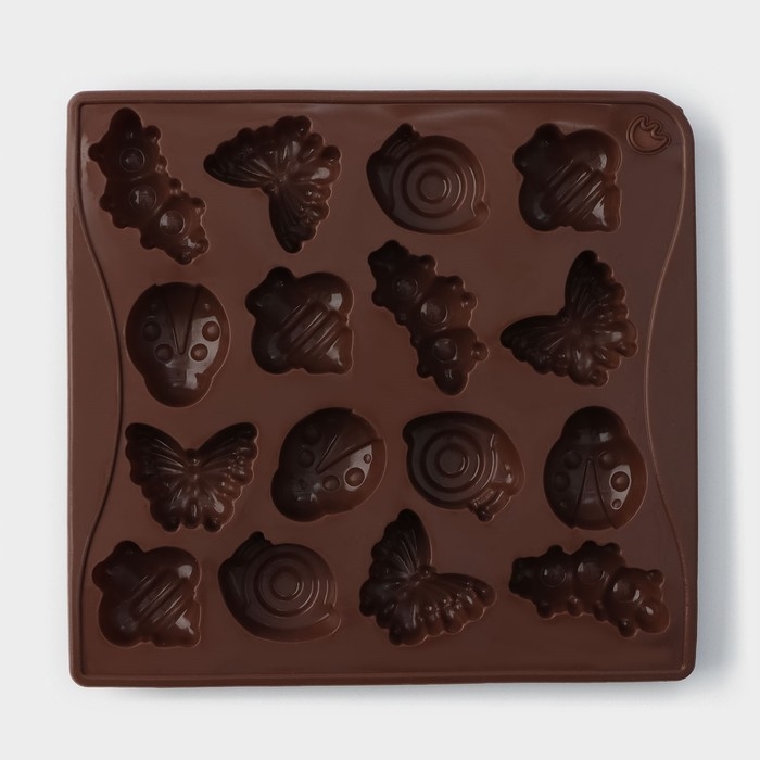 Форма для конфет и шоколада Доляна «Насекомые», силикон, 18×17 см, 16 ячеек (3,5×3,5 см), цвет коричневый