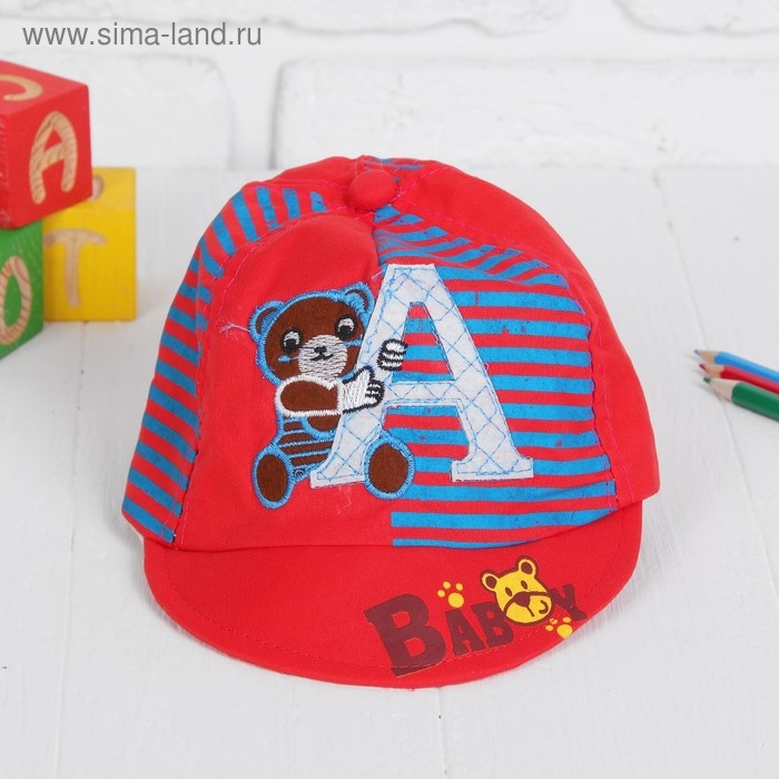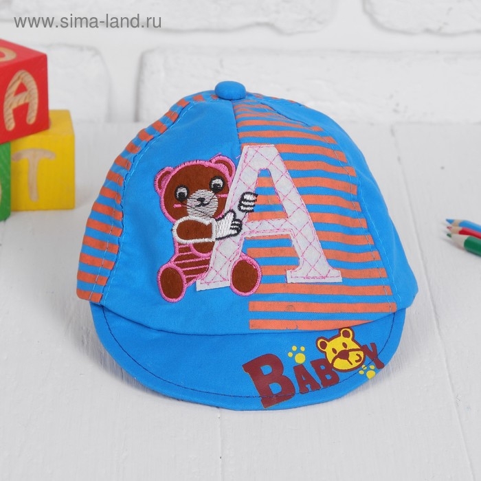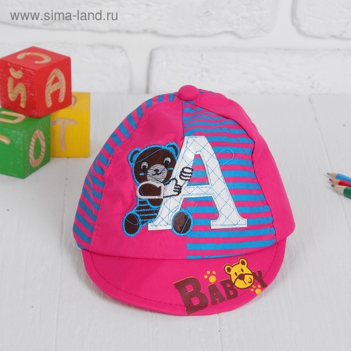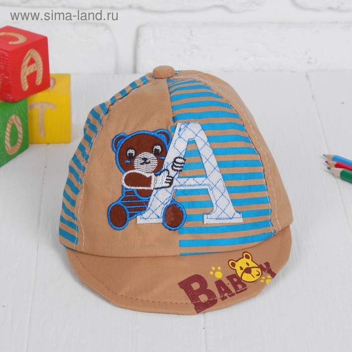 Кепка детская "Мишка" с буковкой микс , р-р. 46–48 см