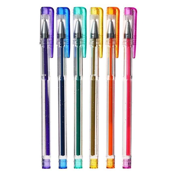 Набор гелевых ручек, 6 цветов, металлик, с блёстками, в блистере
