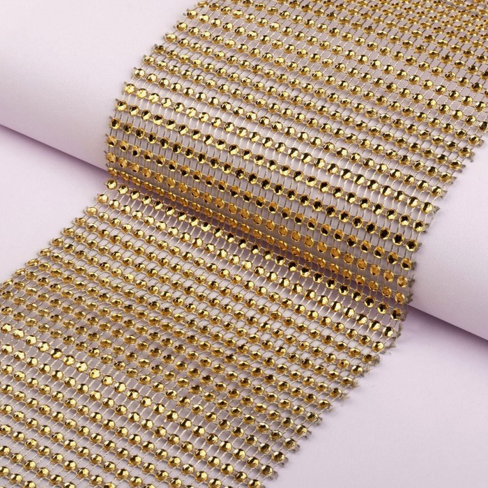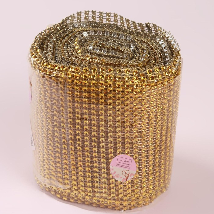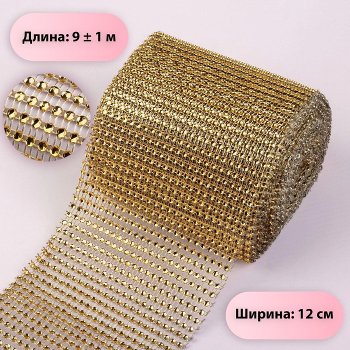 Лента с имитацией страз, 12 см, 9 ± 1 м, цвет золотой