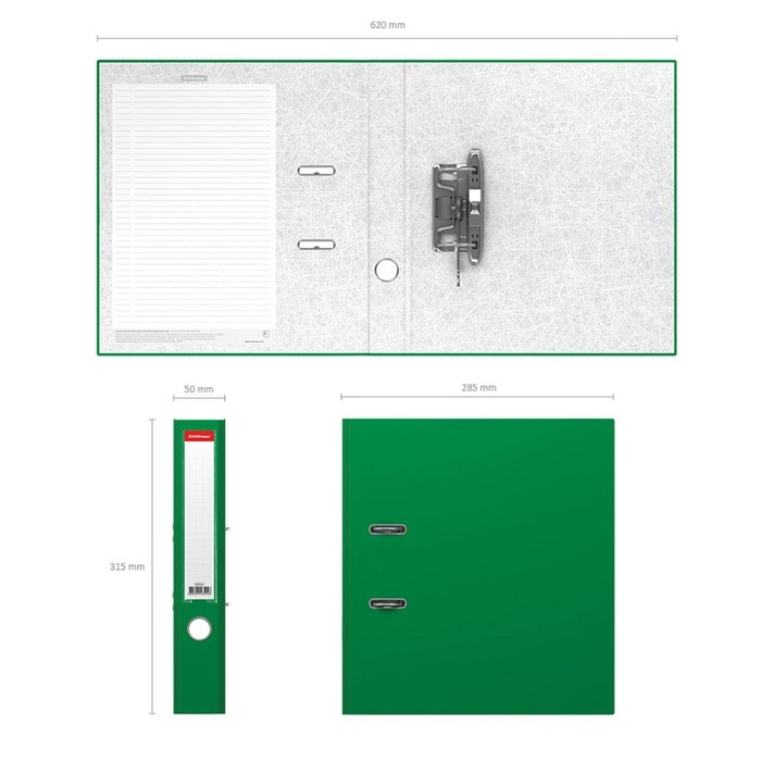 Папка-регистратор А4, 50 мм, ErichKrause Granite, собранная, пластиковый карман, зелёная, вместимость 350 листов