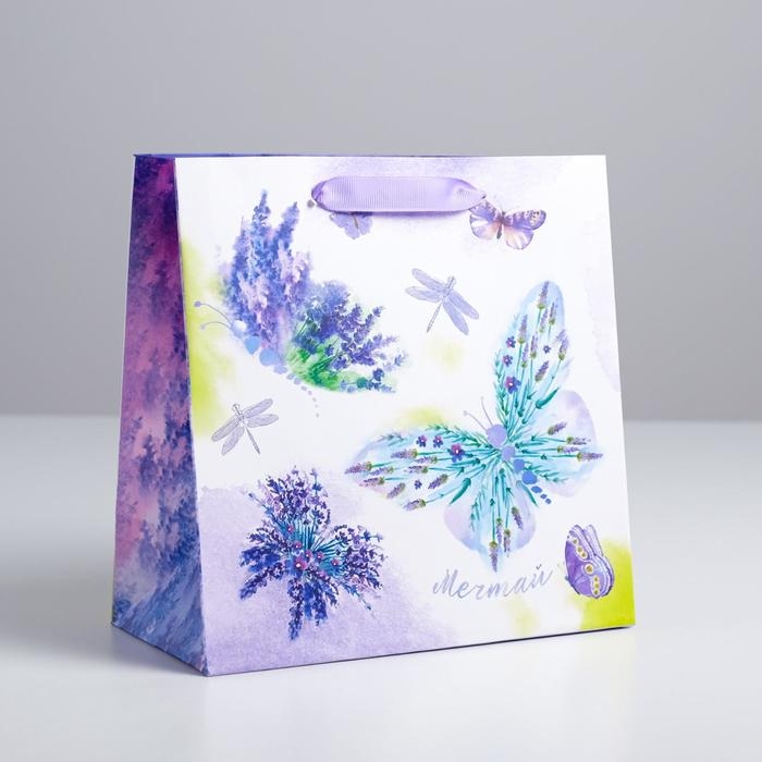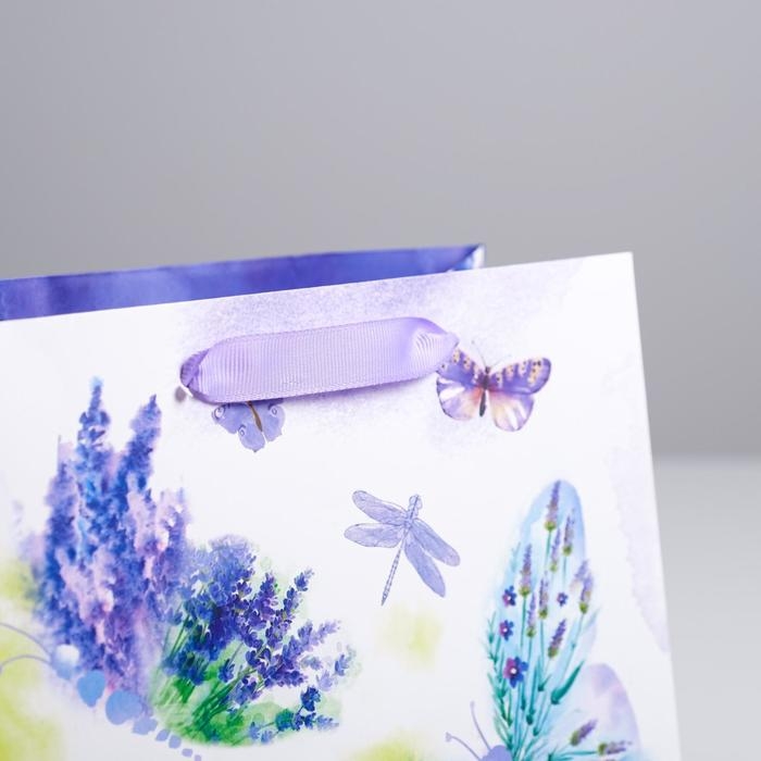 Пакет подарочный ламинированный квадратный, упаковка, «Лавандовая легкость», 22 х 22 х 11 см