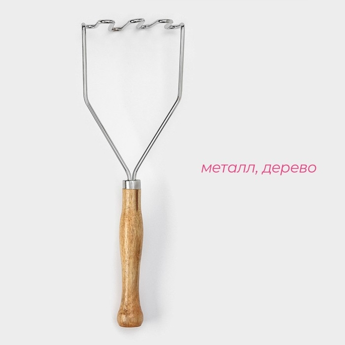 Картофелемялка-толкушка Доляна, 26×4.3 см, берёза