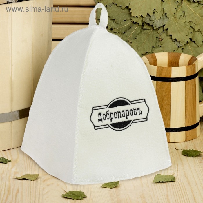 Шапка для бани классическая, белая с черной вышивкой "ДОБРОПАРОВЪ"