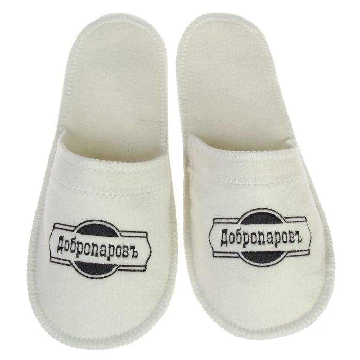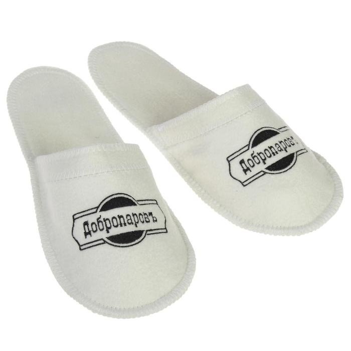 Тапочки для бани белые с черной с вышивкой "ДОБРОПАРОВЪ"