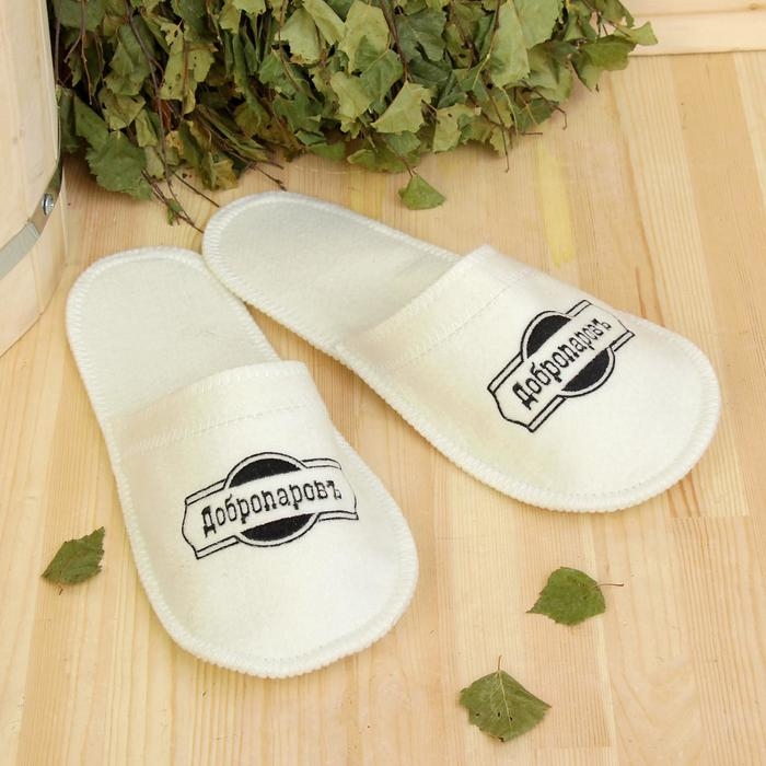 Тапочки банные войлок с вышивкой "С легким паром", ушат