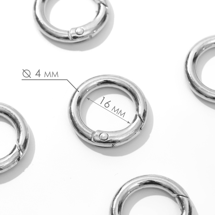 Кольцо-карабин, d = 16/24 мм, толщина - 4 мм, 5 шт, цвет серебряный