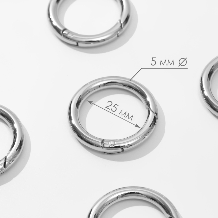 Кольцо-карабин, d = 25/35 мм, толщина - 5 мм, 5 шт, цвет серебряный