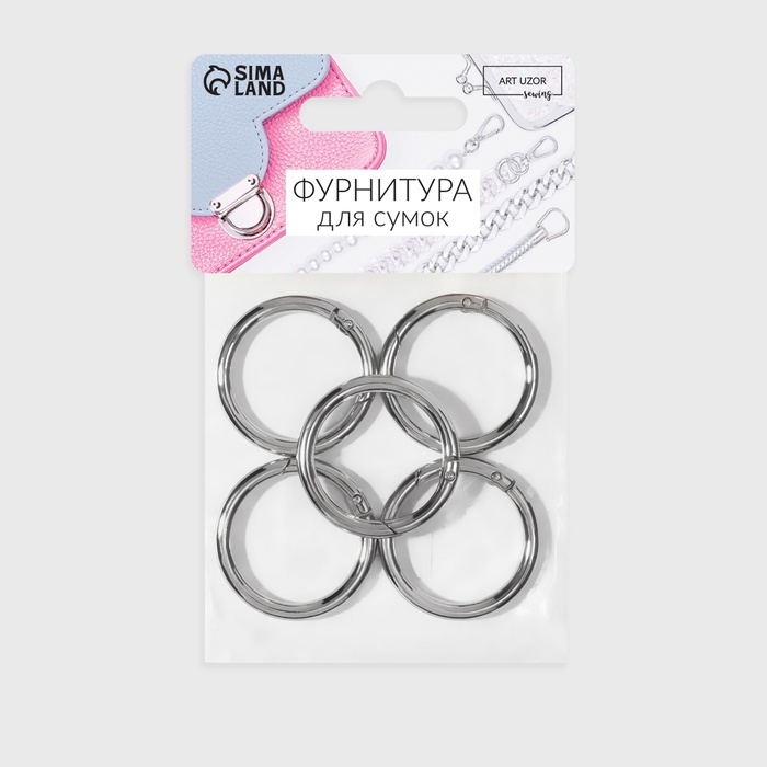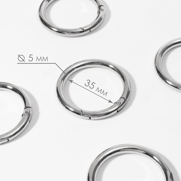 Кольцо-карабин, d = 35/45 мм, толщина - 5 мм, 5 шт, цвет серебряный