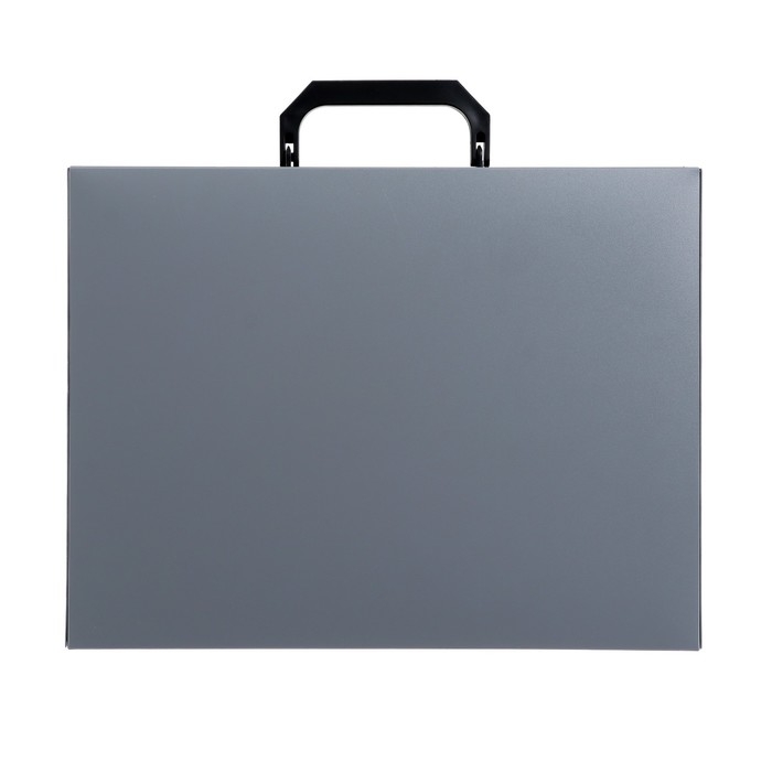 Папка-портфель на замке Calligrata формата А4 используется для хранения и перевозки большого количества документов. Изделие представлено в сером цвете. Папка изготовлена из плотного фактурного пластика толщиной 700 мкм. Товар оснащён укреплённой ручкой и имеет одно отделение