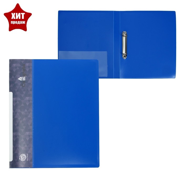 Папка на 2 кольцах А4, Calligrata, 25 мм, 700 мкм, внутренний и торцевой карман, синяя