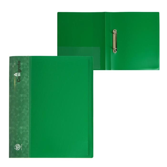 Папка на 2 кольцах А4, Calligrata, 27 мм, 700 мкм, внутренний и торцевой карман, зеленая