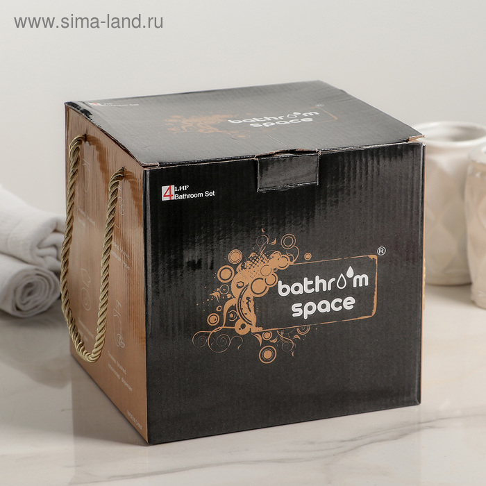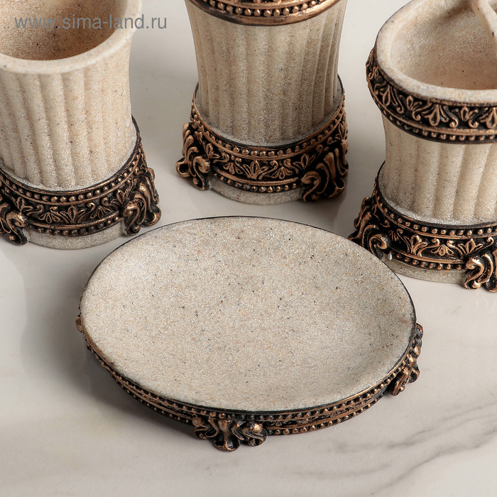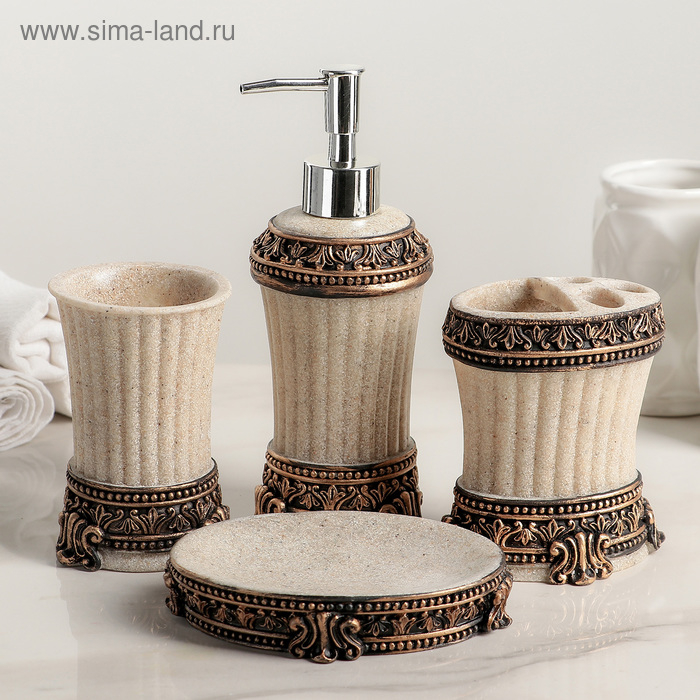 Набор аксессуаров для ванной комнаты «Вензеля», 4 предмета (дозатор 200 мл, мыльница, 2 стакана), цвет бежевый