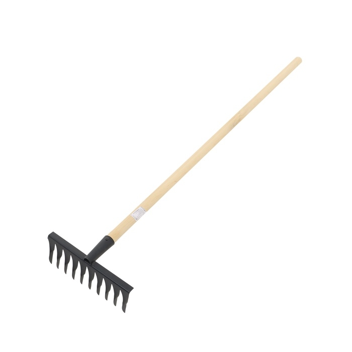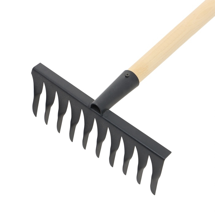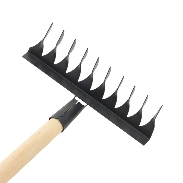 Грабли прямые, повёрнутый зубец, 10 зубцов, металл, деревянный черенок