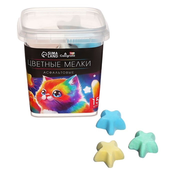 Мелки цветные для асфальта 15 штук Calligrata TOP, в форме звёздочки (3 х 1,3см; 5-7 гр), МИКС