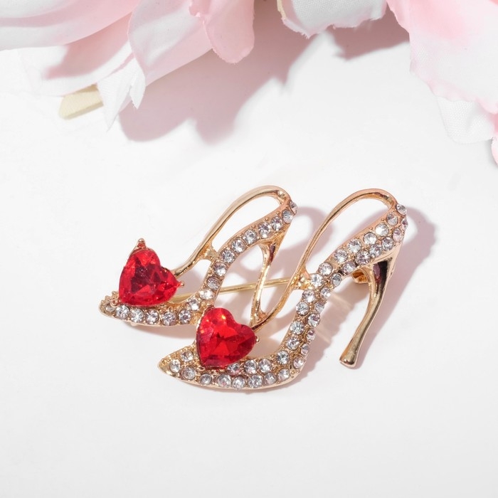 Брошь «Туфель пара», цвет красно-белый в золоте