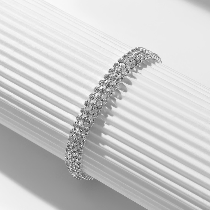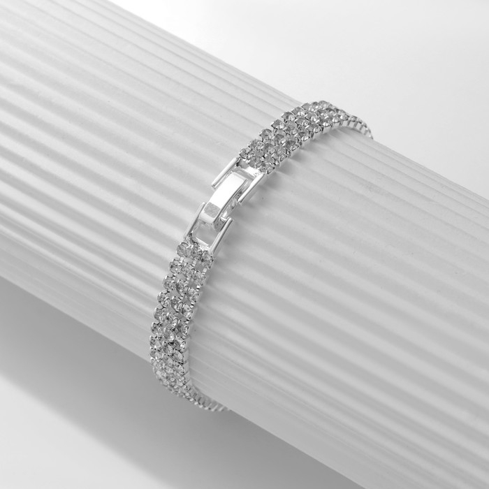 Браслет со стразами «Шайн» 2 ряда, цвет белый в серебре