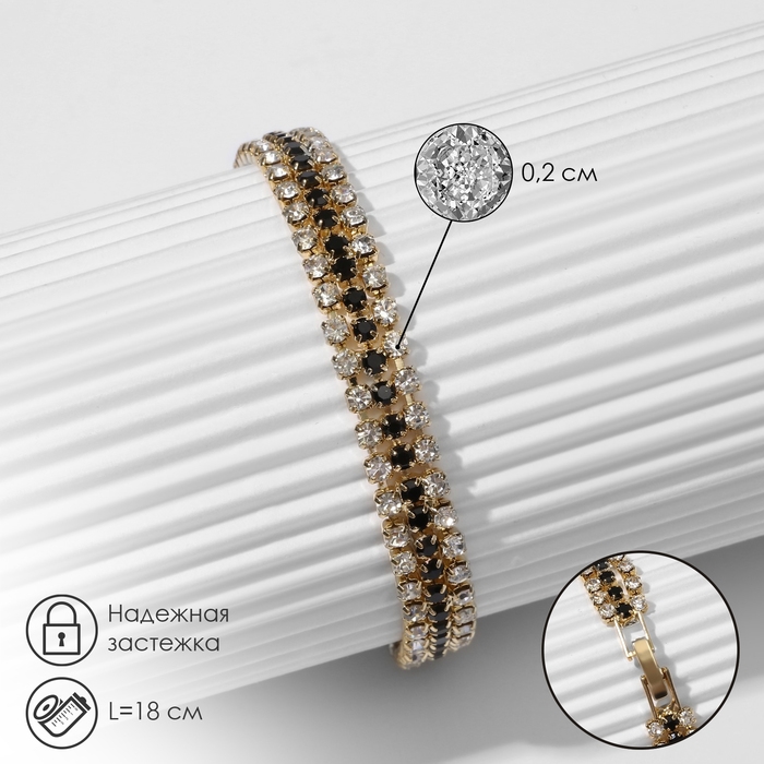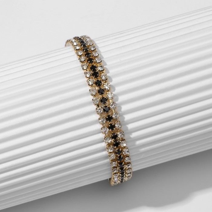 Браслет со стразами «Лёд» элегантность, строчки, цвет бело-чёрный в золоте, L=18 см