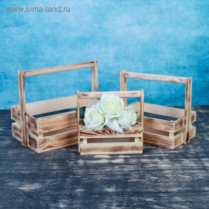 Набор кашпо деревянных подарочных "Модерн", 3 в 1, с ручкой, экзотик