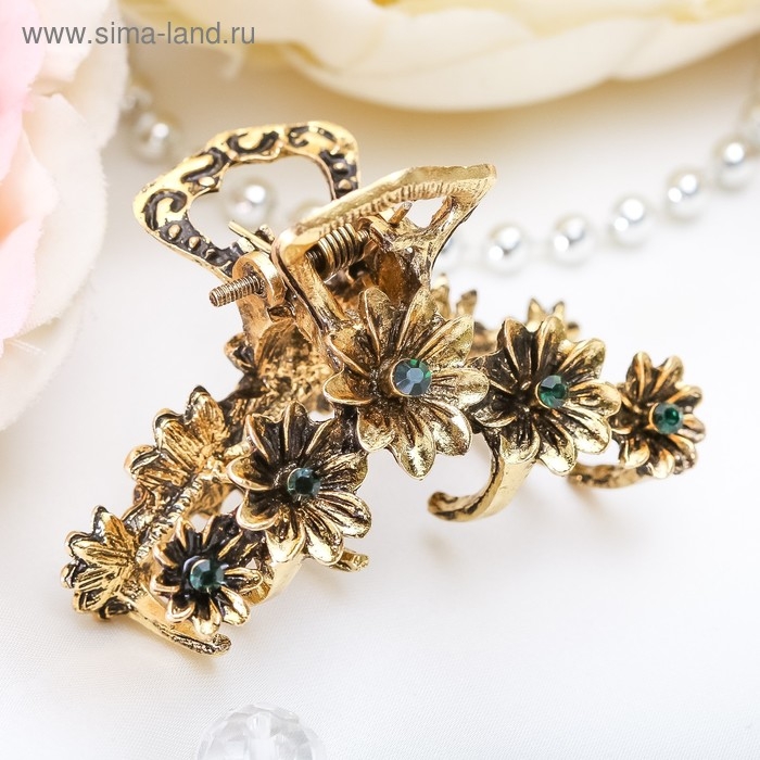 Краб для волос "Каспиан" астры, 5 см, золото
