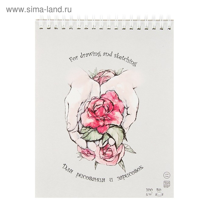 Блокнот состоит из 40 листов бумаги для зарисовок плотностью 100г/м2. Бумага подходит для зарисовок, набросков карандашом, углем, чернилами, тушью и гуашью.