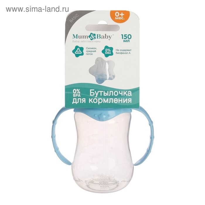 Бутылочка для кормления, классическое горло, приталенная, с ручками, 150 мл., от 0 мес., цвет голубой