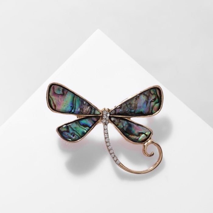 Брошь-кулон «Галиотис» стрекоза, цвет зелёный в золоте